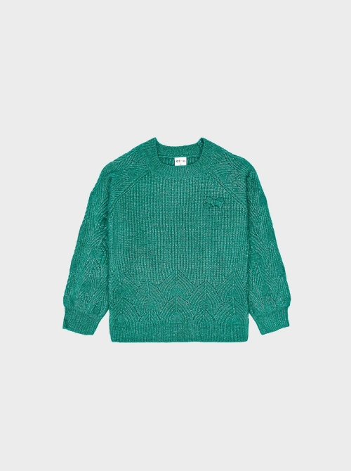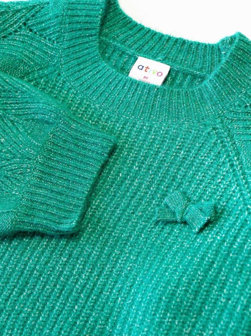 Camisola de Tricot com laço verde para Menina